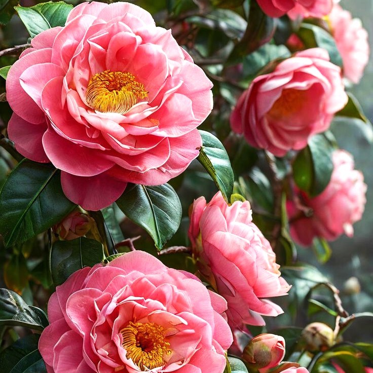 The Pink Semi Double Camellia Plant is a refined ornamental shrub admired for its layered pink petals and beautifully visible golden stamens. This variety offers the perfect balance between simplicity and fullness, making it ideal for premium garden aesthetics. Its semi-double bloom structure creates a rich floral presence while still maintaining a soft, elegant appearance.