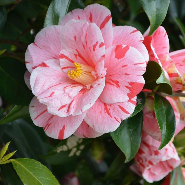 Unlike standard pink camellias, the Variegated Pink Camellia Plant produces unpredictable and artistic floral patterns. No two flowers look exactly the same, adding character and individuality to your garden space.